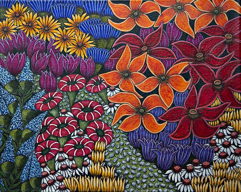Mit billedlige univers er inspireret af eventyrfortællinger, middelalderen, blomster, haveanlæg, slotte, borge …